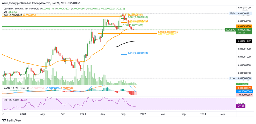 Dans sa paire en Bitcoin, le cours de l’ADA s’approche du support du golden ratio