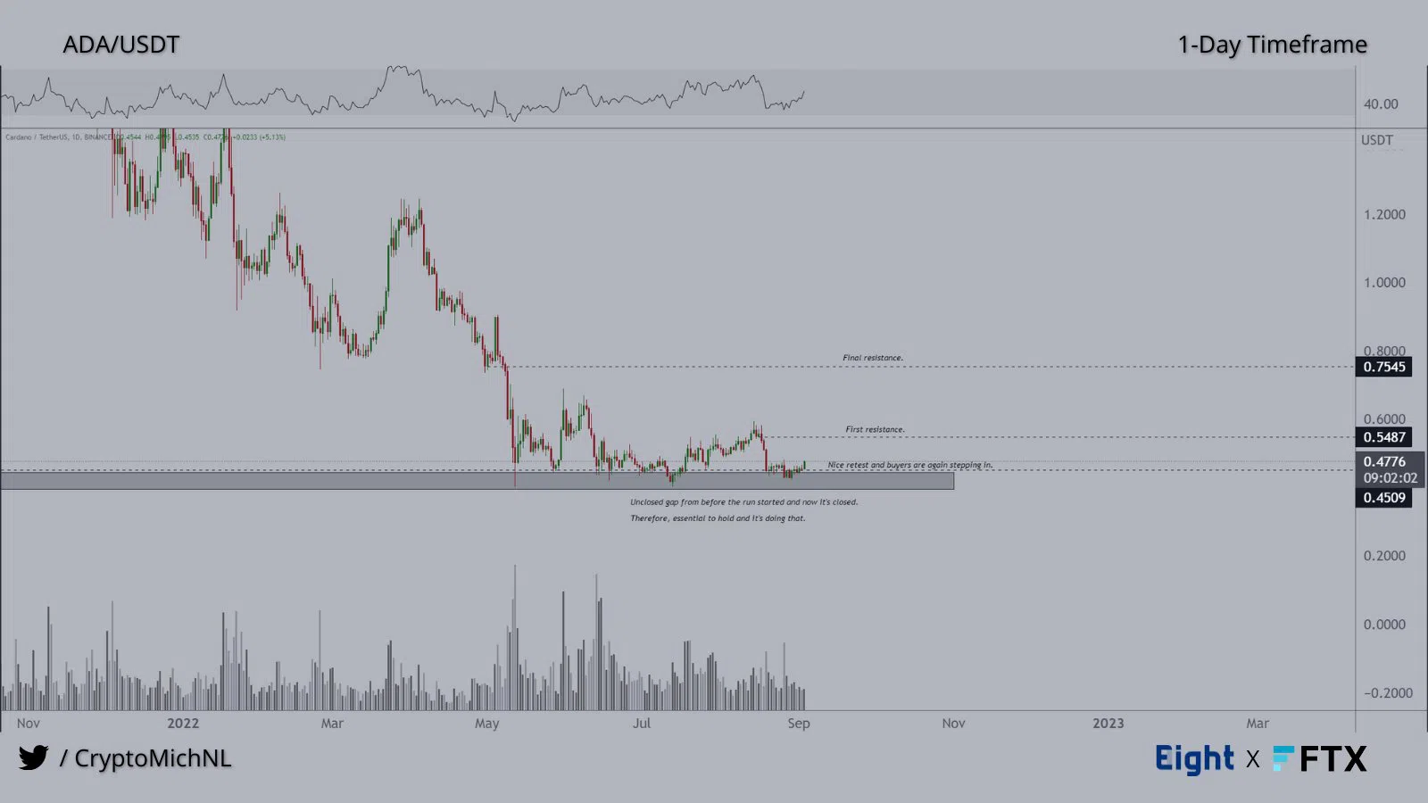 Le crypto trader @CryptoMichNL a partagé sur Twitter un graphique de Cardano, affirmant que le cours pourrait s’accroître vers 0,55 $ et 0,75 $.