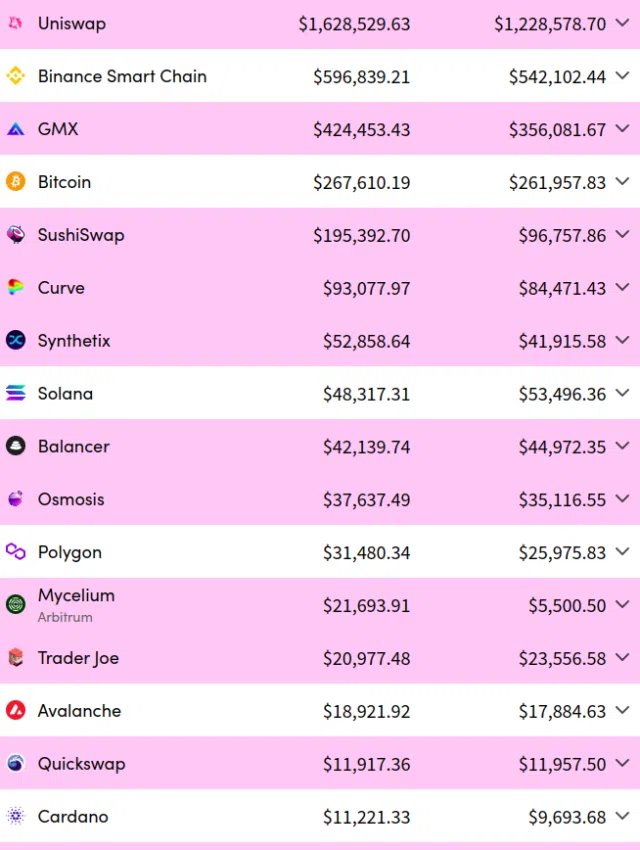Ce faible volume de transactions s’avère surprenant compte tenu de la capitalisation boursière d’Uniswap (environ 6 milliards de dollars) et de celle de Cardano (20 milliards de dollars). Il est important de souligner qu’Uniswap compte également un nombre plus élevé de frais quotidiens, s’élevant à 1 000 000 $, contre 10 000 $ ou moins pour Cardano.