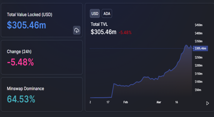 Lorsque Be[In]Crypto a mené une analyse de la TVL de Cardano à la mi-mars, MiniSwap présentait une valeur totale bloquée d’environ 95,36 millions de dollars, contre environ 1,6 million de dollars pour MuesliSwap.