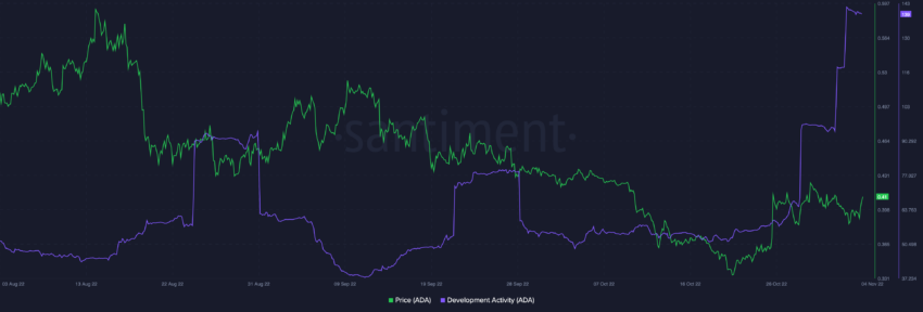 Le 2 novembre, l’activité de développement de Cardano a atteint un sommet historique, quoique cela ait eu peu d’effet sur le cours de l’actif.