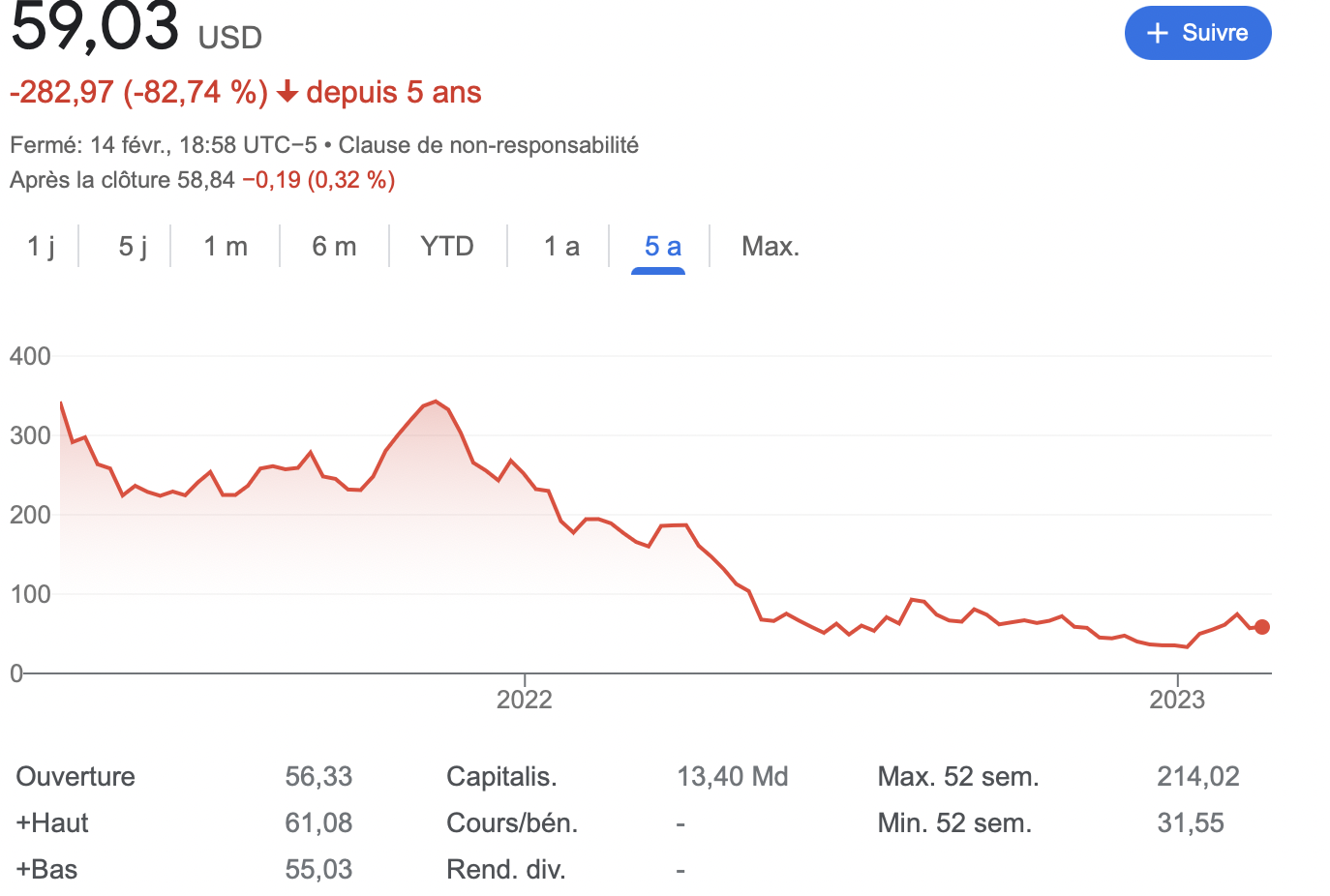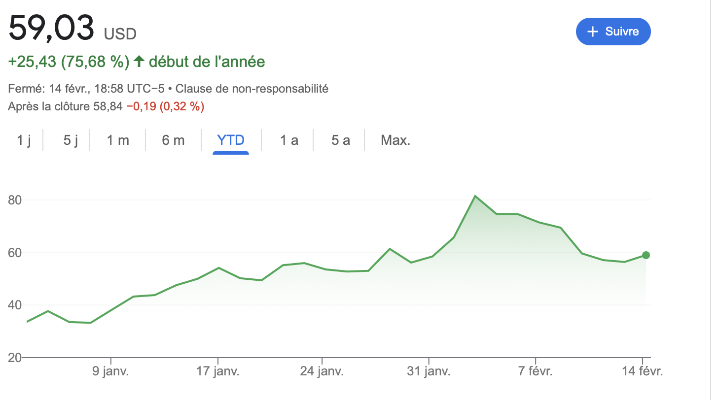 Coinbase fait partie des valeurs en bourse qui ont beaucoup souffert du bear market du marché crypto en 2022. L’action a plongé de plus de 80 % par rapport à son sommet de novembre 2021. Cependant, COIN a connu une bouffée d’air avec le rebond technique du marché crypto au début de l’année. L’action Coinbase en a ainsi profité pour réaliser une hausse de 90% au cours du mois de janvier, quoiqu’elle ait perdu 22% la semaine dernière.