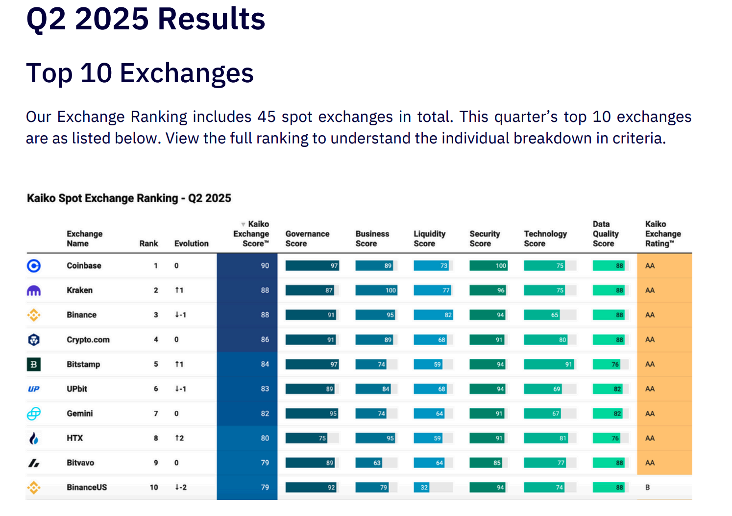 Kaiko a constaté que la liquidité est concentrée dans les cinq principales plateformes crypto, tandis que les challengers s’étendent régionalement avec de nouveaux services.