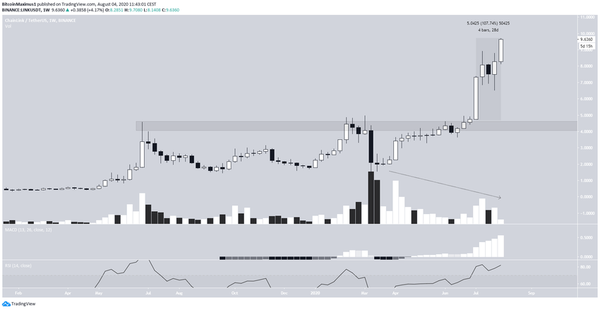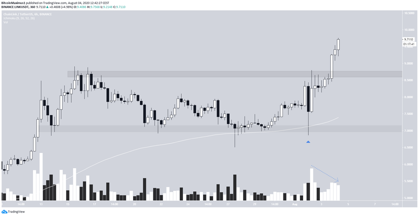Ce 4 août, le cours de ChainLink (LINK) a atteint un nouveau sommet record à 9,75$.