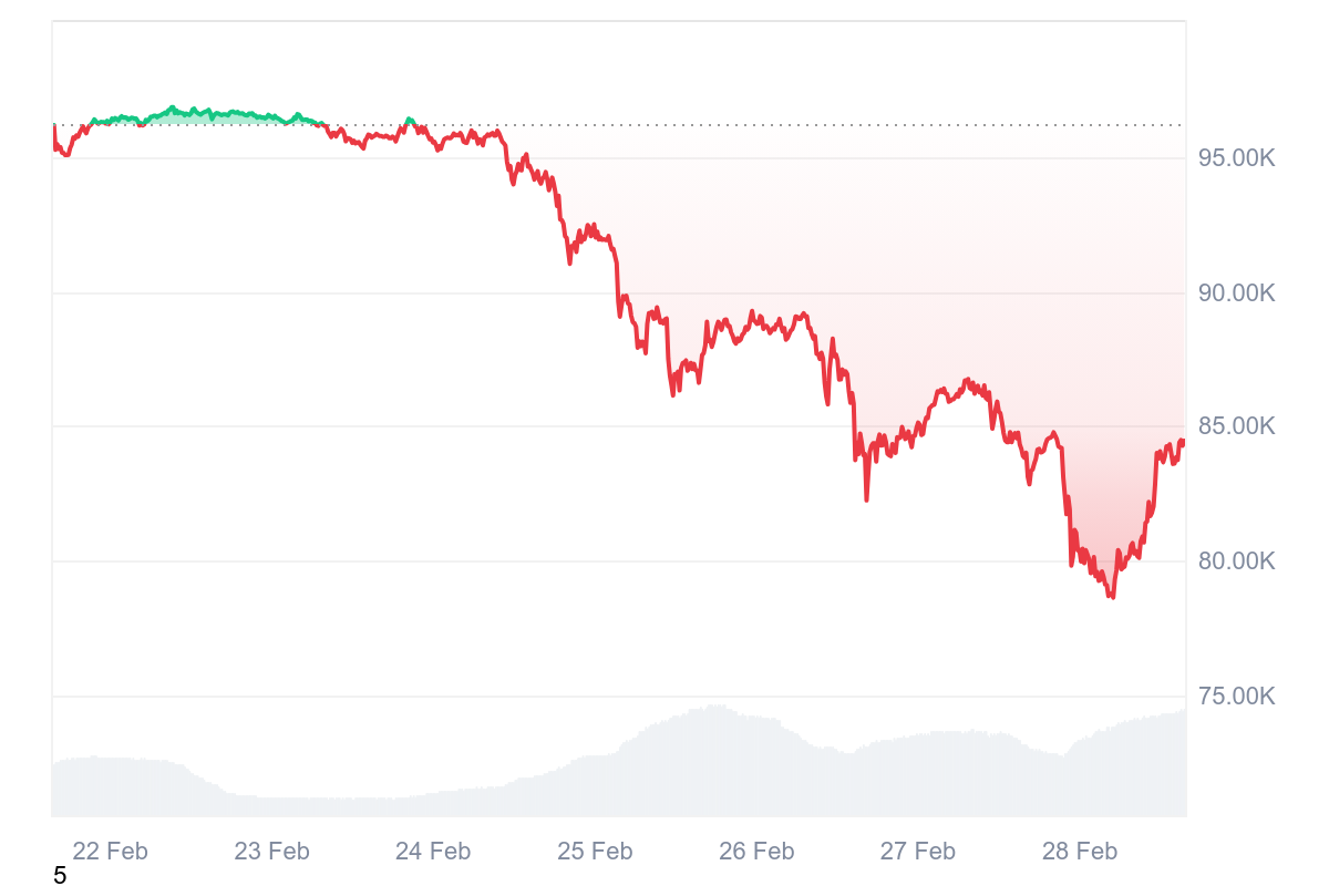 Au moment de rédaction, le cours du Bitcoin se négocie aux alentours des 84 000 $. Tantôt au-dessus, tantôt au-dessous. Cependant, ces dernières jours, le jeton a été mis à rude épreuve en chutant jusqu’à 78 000 $.