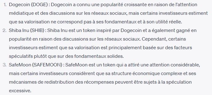 Malgré leur popularité (notamment sur les réseaux sociaux), ces jetons sont surcotés d’après ChatGPT et ne devraient pas capitaliser autant d’argent.