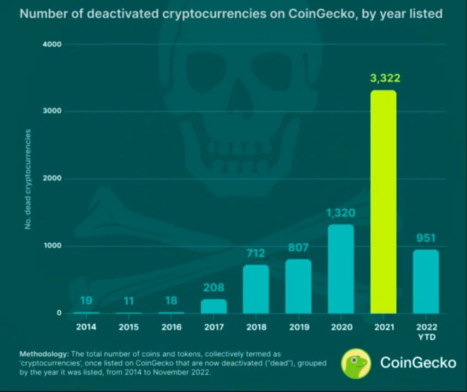 Julia Ng, un des responsables chez CoinGecko a partagé un rapport avec BeInCrypto pour apporter plus de lumière sur ce récit. Dans ce document, le rapport donne un aperçu de la manière dont certaines crypto-monnaies, pourtant dotées d’un grand potentiel, sont allées droit dans la tombe.
