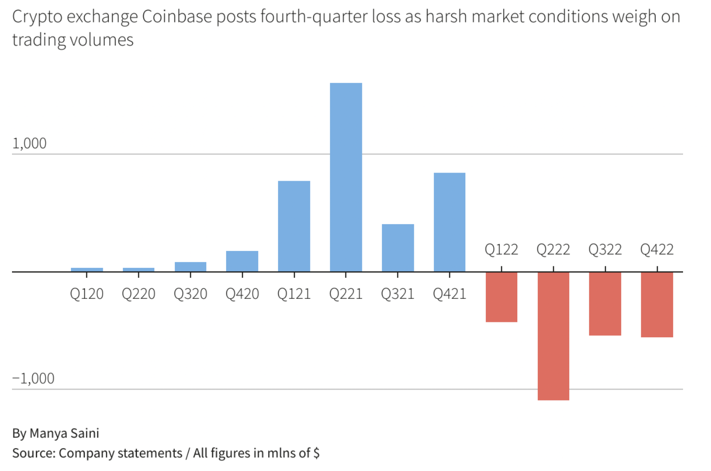 Coinbase a communiqué ses résultats financiers pour le quatrième trimestre de 2022. Alors que la plupart des indicateurs sont au rouge, le rapport financier de l’exchange s’avère tout de même intéressant. En effet, les résultats pourraient être pires compte tenu de l’effondrement du marché crypto au cours de cette période.