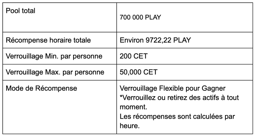 - Lien de l’événement : Verouiller CET ou NFTAI pour partager 700 000 PLAY