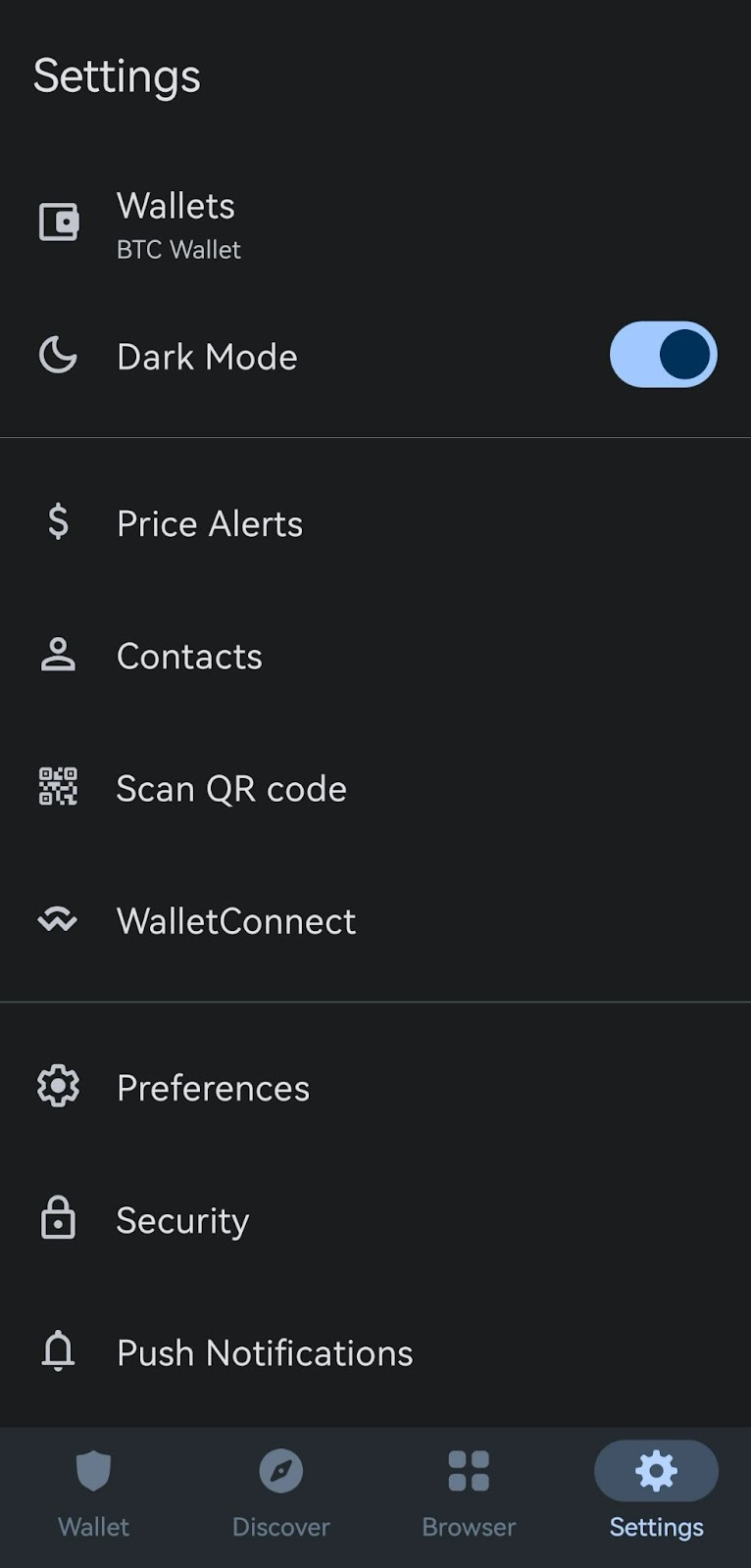Dans Trust Wallet, sélectionnez “settings” en bas à droite de votre écran. Sélectionnez ensuite “Scan QR code”.