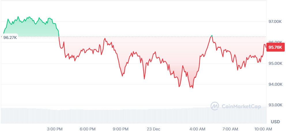 La FED n’a pas l’intention de souhaiter un joyeux Noël à la crypto cette année puisqu’elle a annoncé deux baisses de taux d’intérêt pour 2025, contre cinq anticipées initialement. Suite à cette nouvelle, le BTC n’a cessé de chuter, atteignant même 95 000 $ cette nuit.
