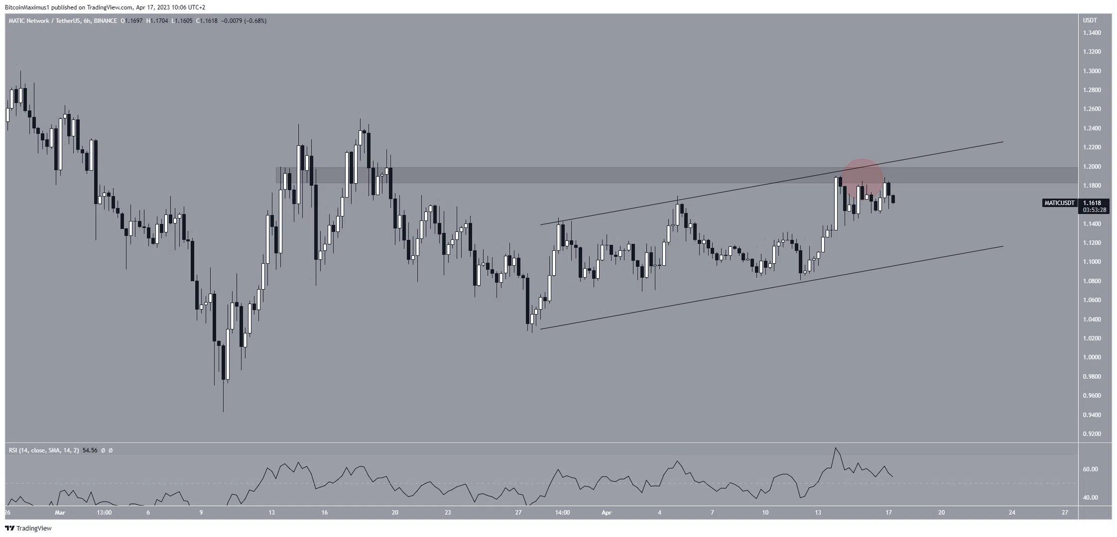 Malgré le rejet de la zone (cercle rouge), le cours MATIC évolue toujours dans la partie supérieure du canal. Cela permet d’envisager la possibilité qu’il dépasse cette figure.