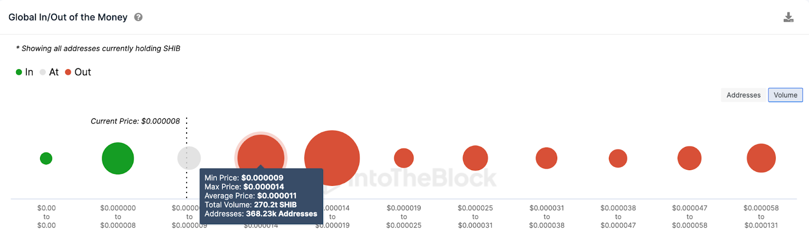 SponsoredCependant, les haussiers auront plusieurs combats à mener. En effet, puisqu’ils pourraient faire face à une résistance significative autour de 0,000009 $. Les 368 000 investisseurs ayant acheté un total de 270 billions de jetons SHIB au prix minimum de 0,000009 $ pourraient amorcer un repli du cours.