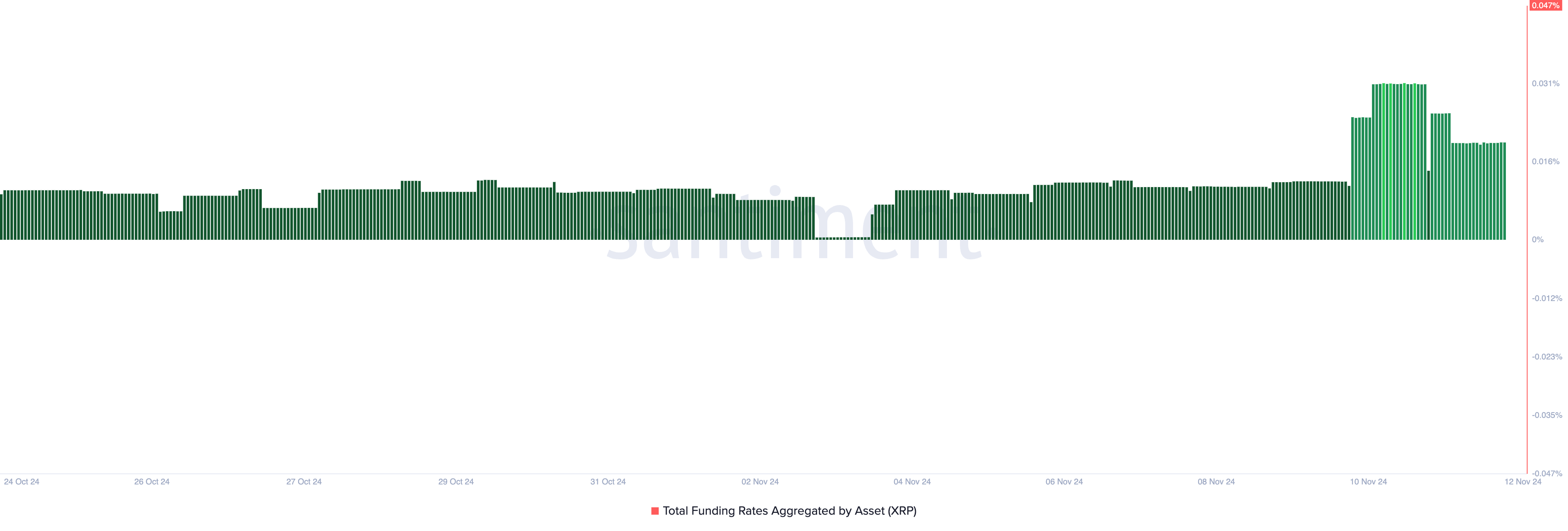 De plus, le taux de financement de XRP est resté positif, indiquant que ses détenteurs parient sur une poursuite de la hausse du cours. Selon les données de Santiment, il est actuellement de 0,047 %.
