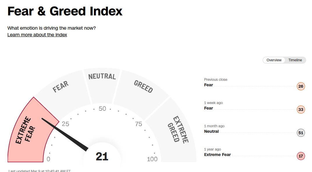 Comme le fait savoir Steve Hanke, le danger immédiat vient surtout de la défiance des marchés. Depuis début février, l’Indice de Fear and Greed des investisseurs nord-américains s’est effondré, passant de 66 à près de 21.