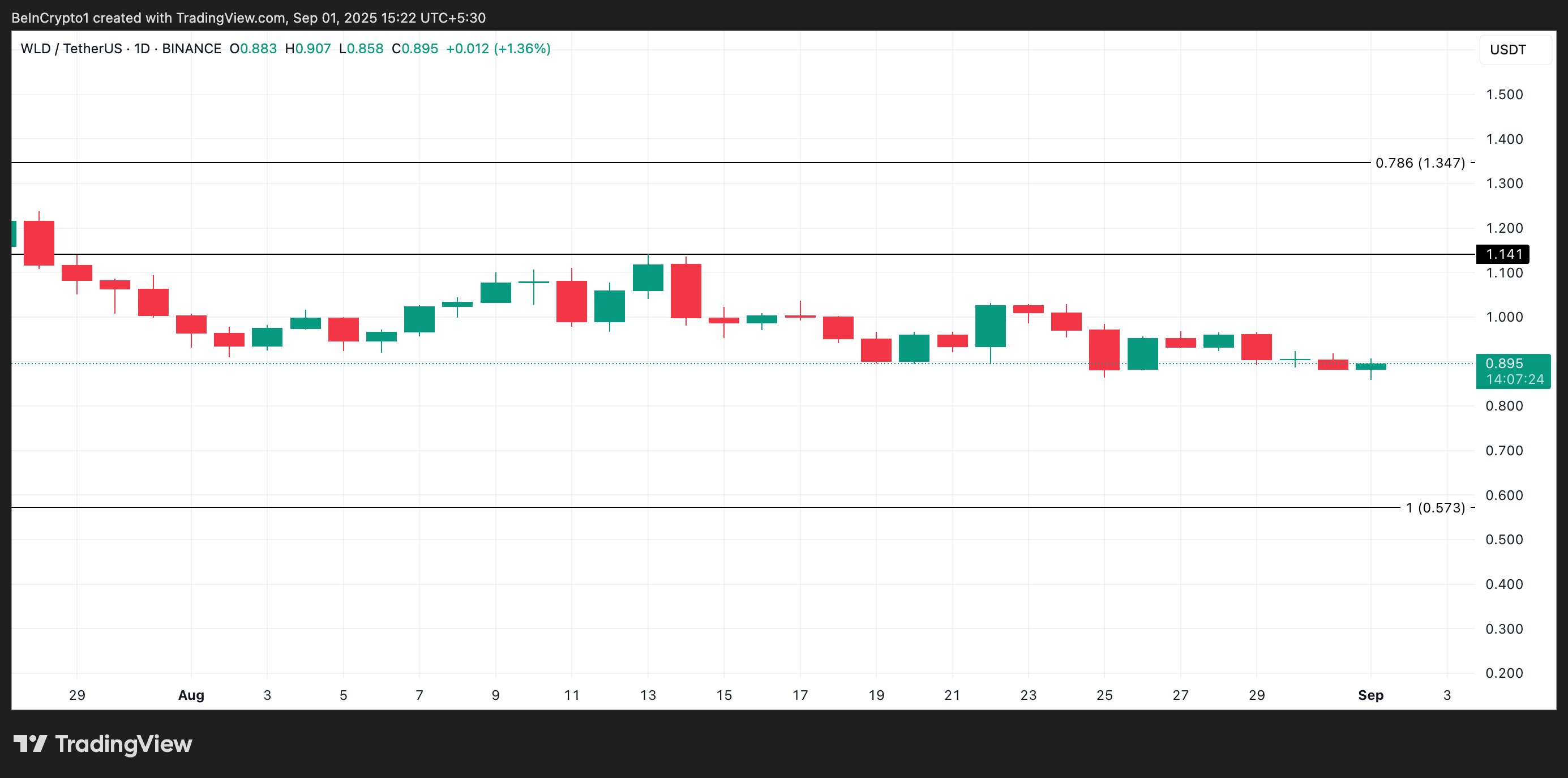 Sponsored SponsoredAnalyse du prix WLD. Source : TradingView