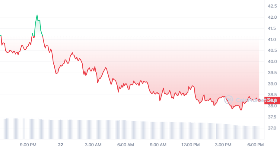 Au moment de rédaction, Injective (INJ) s’échange à 38,43 $. La pièce est en léger recul par rapport à son ATH de 43 $, mais étant donné les performances des dernières semaines, retrouver la pièce dans cette liste peut paraître surprenante.