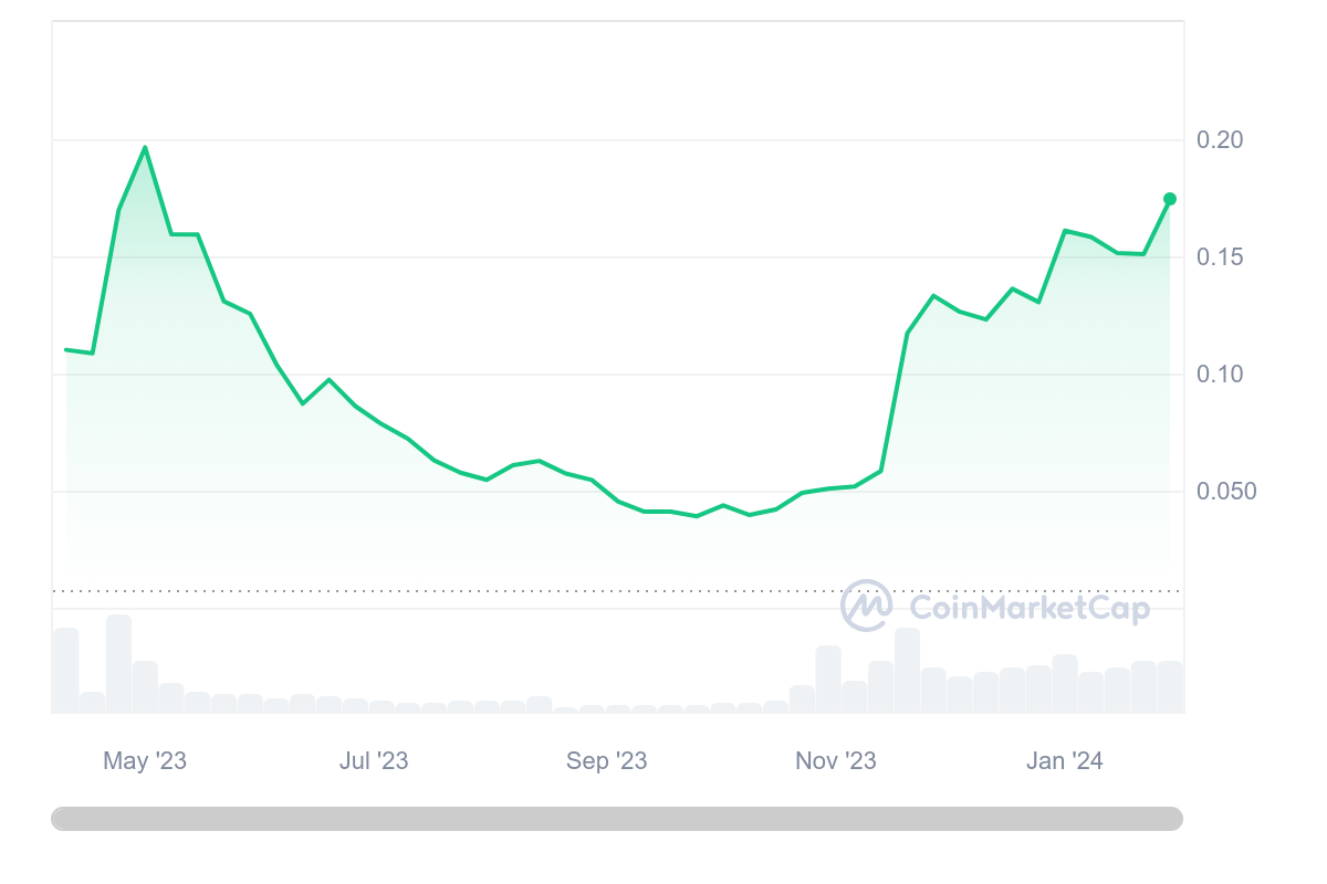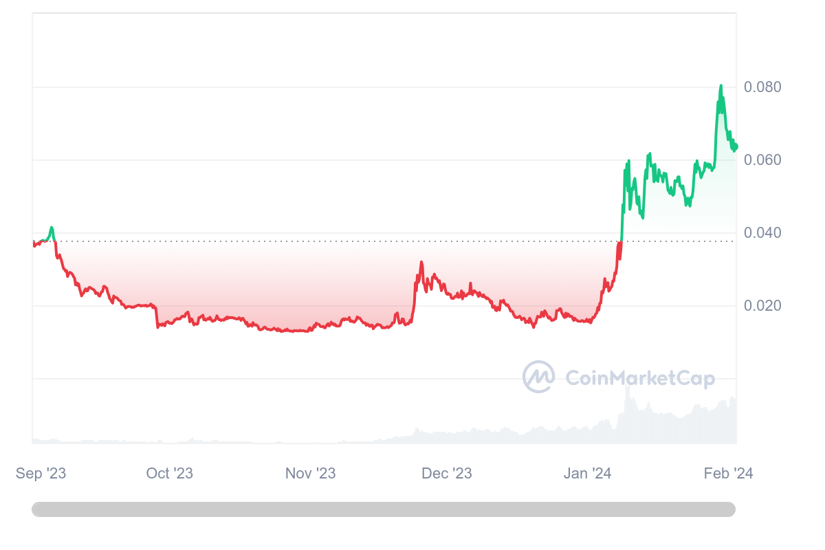 Depuis plusieurs semaines, le cours AITECH est en hausse constante, avec un ATH qui vient même d’être signé le 30 janvier, après un listing sur HTX (ex Huobi). Indisponible sur KuCoin, Bybit ou encore OKX, le jeton a encore une belle marge de progression, notamment avec une market cap de seulement 25 millions de dollars.