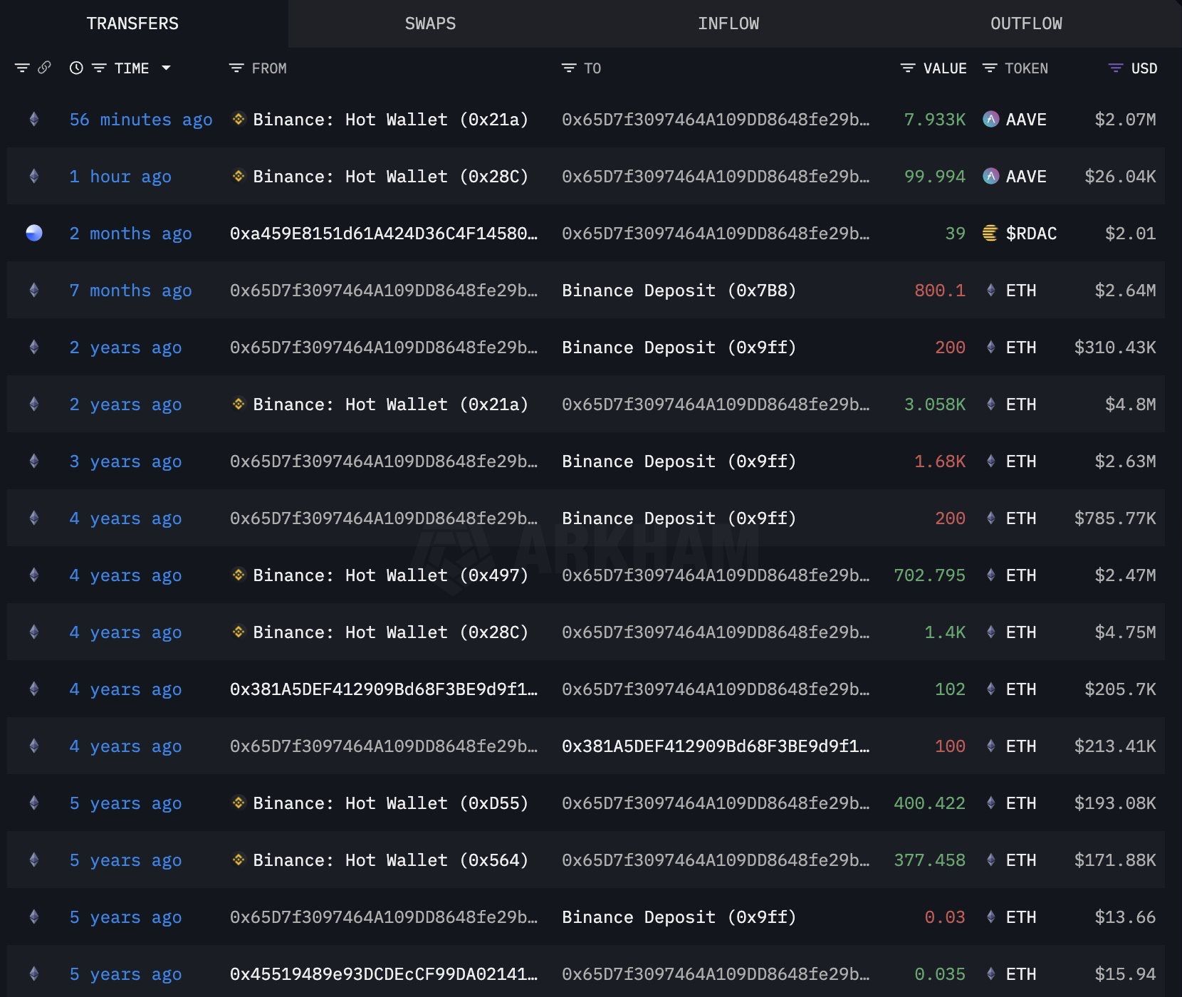 Il y a quelques heures, ce même portefeuille a retiré 8 033 AAVE (soit 2,09 M$) de Binance. Ce n’est pas rien : c’est le premier signal de diversification en cinq ans. Un premier mouvement hors ETH en cinq ans, et surtout, un mouvement millionnaire. Une simple rotation crypto ? Ou un fort signal d’un retour stratégique et prometteur vers la finance décentralisée ?
