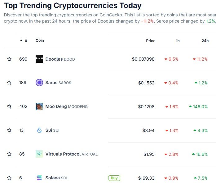 Virtuals Protocol (VIRTUAL) est le jeton en vogue sur CoinGecko, en raison de gains notables tant à la journée comme sur un mois.