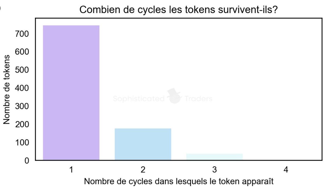 Malgré tout, cycle après cycle, les cryptomonnaies dominantes arrivent de plus en plus à se maintenir au sein du top 400 crypto alors qu’au départ, les probabilités étaient très faibles.