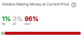 SponsoredPour Arbitrum (ARB), par exemple, la rentabilité fait clairement défaut avec 1 % seulement des investisseurs qui seraient actuellement “In the money”. Ce, en reprenant les informations partagées par IntoTheBlock.