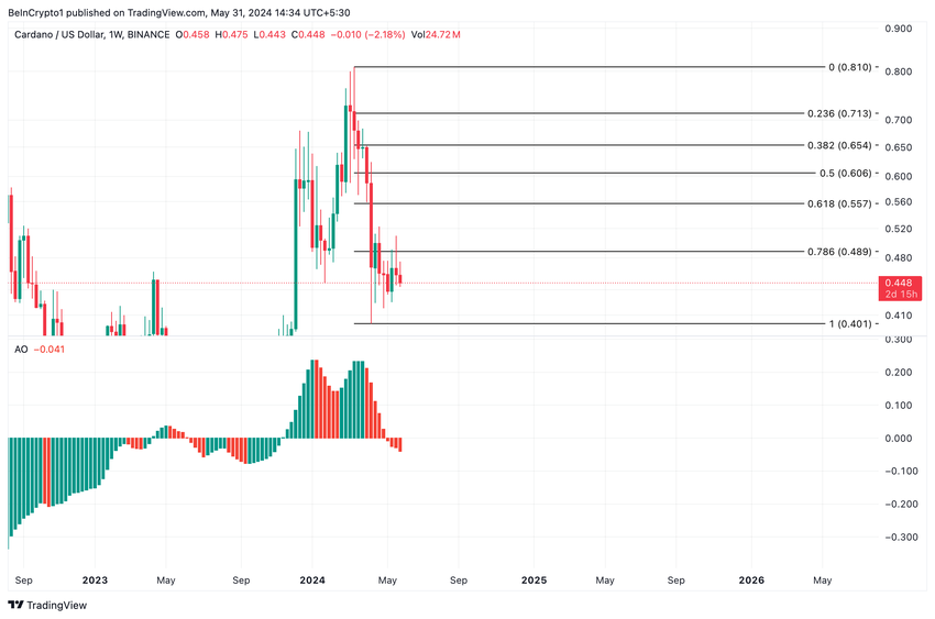 Si la pression à la vente continue de s’intensifier, le prix de l’ADA pourrait tomber à 0,40 $. La dernière fois que l’actif s’est échangé à un prix similaire remonte à décembre 2023.