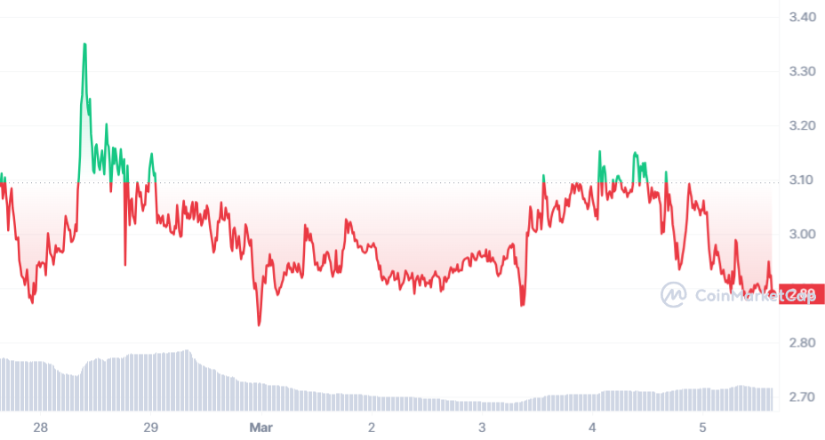 En ce début de mois de mars, l’actif est toutefois retombé, avec un cours STX qui est même passé sous les 3 $. Malgré tout, Le jeton n’est qu’à 20 % de son ancien ATH. Mais encore, si l’on prend le précèdent sommet effectué sur la semaine, la brèche est bien plus petite.