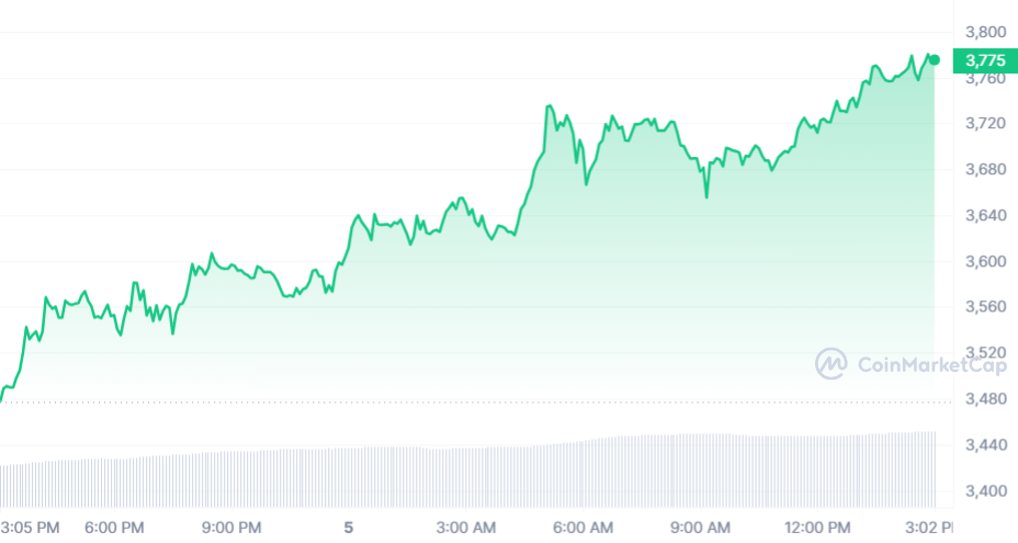 SponsoredLe cours ETH, en hausse une fois de plus en 2024, accuse encore un écart de 22,8 % par rapport à son sommet ultime. Au moment de rédaction, Ethereum est en hausse de 8,73 % et s’échange maintenant très proche des 3 8 00 $. Finalement, il ne restent “plus que” 1 000 dollars à combler.