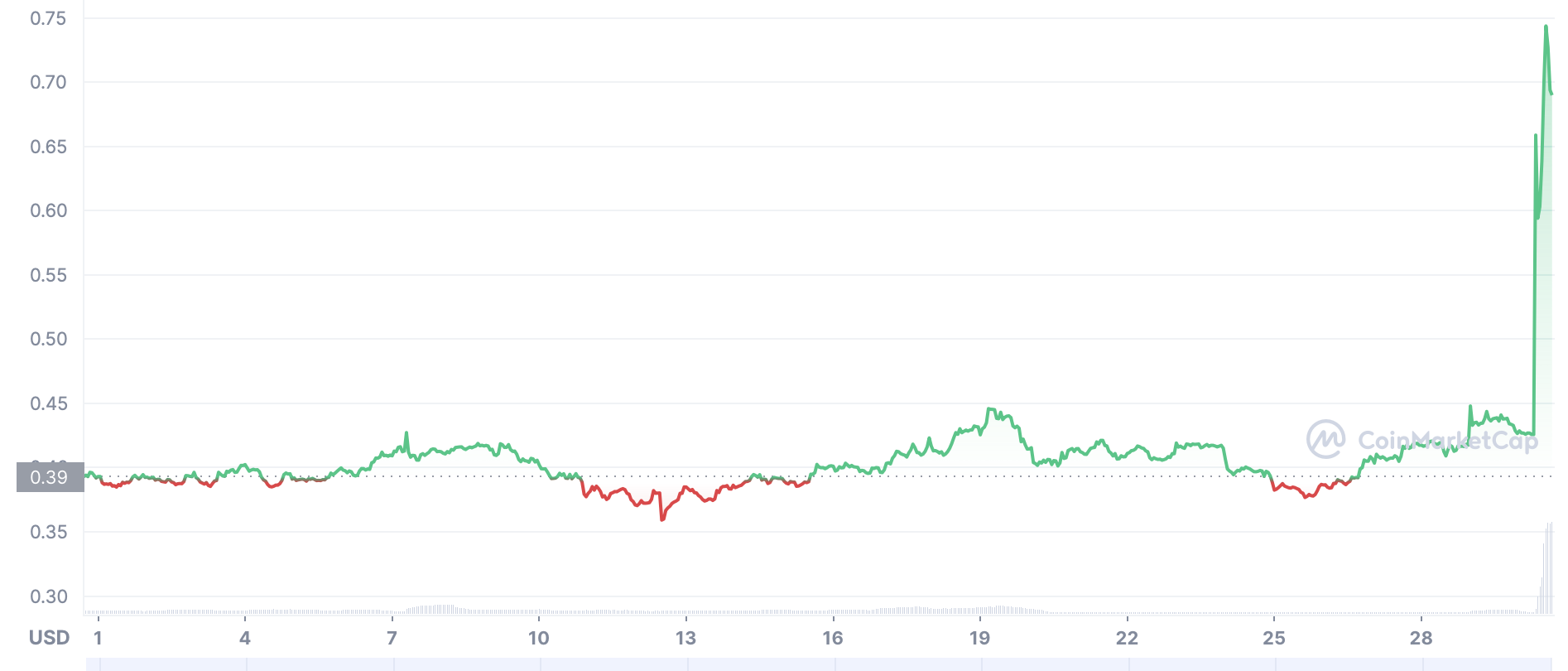 | Pundi X (PUNDIX) | 0,39 $ | 0,7929 $ | 0,6919 $ | 10,07 $ |