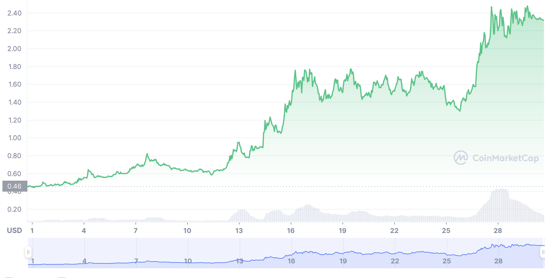 | Lido Dao (LDO) | 0,46 $ | 2,40 $ | 2,32 $ | 7,30 $ |