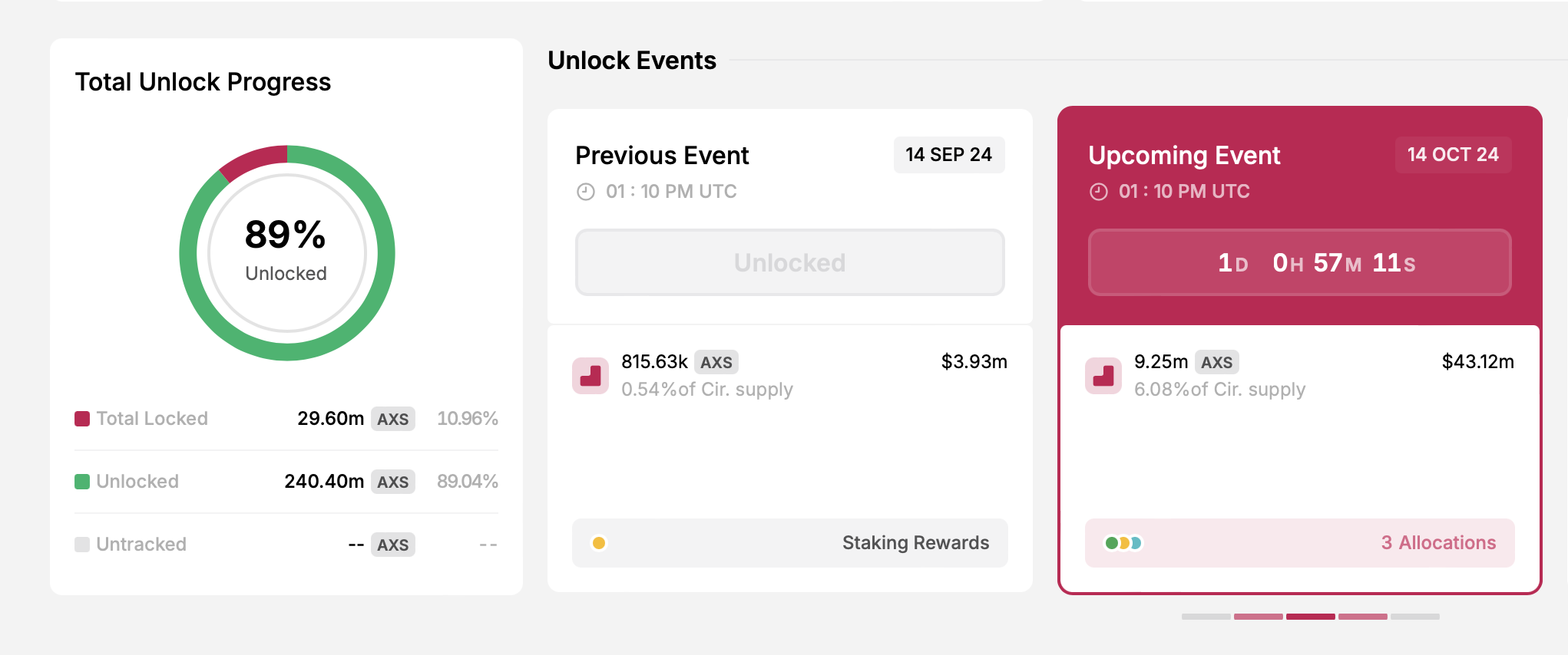 - Nombre de tokens débloqués : 9,25 millions d’AXS