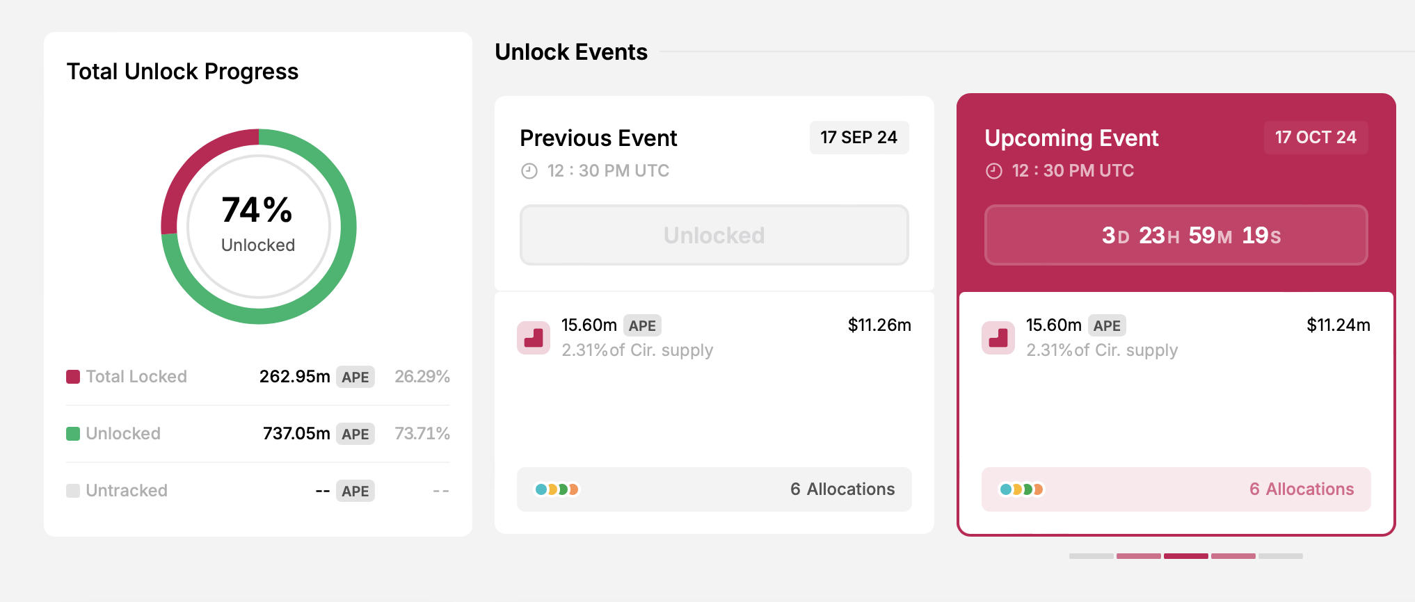 Habituellement, le cours de APE a tendance à baisser suite à de grands déblocages. Les investisseurs et les traders devraient donc surveiller de près cet événement, car il pourrait influencer considérablement la dynamique du cours du token.