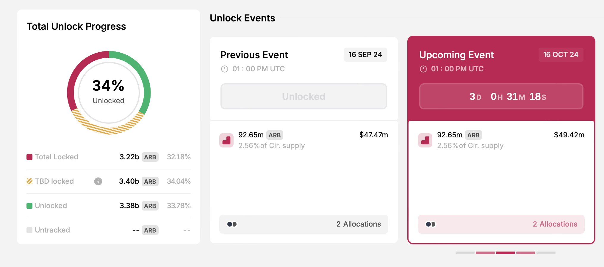 - Nombre de tokens débloqués : 92,65 millions d’ARB