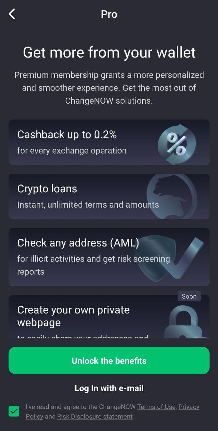 La fonctionnalité Pro de NOW Wallet offre à ses utilisateurs et sur chaque transaction un cashback en NOW Tokens, la monnaie native de l’écosystème ChangeNOW, des frais réduits sur les échanges hors chaîne, et des vérifications AML gratuites. Les utilisateurs peuvent rationaliser leurs transactions avec une adresse d’échange permanente, permettant de réutiliser la même adresse pour des paiements récurrents. Chaque niveau d’adhésion offre des avantages croissants, incluant des taux de cashback supérieurs et des vérifications AML supplémentaires, avec le plan Brilliant offrant des vérifications AML illimitées et jusqu’à 50 000 NOW tokens en cashback mensuel.