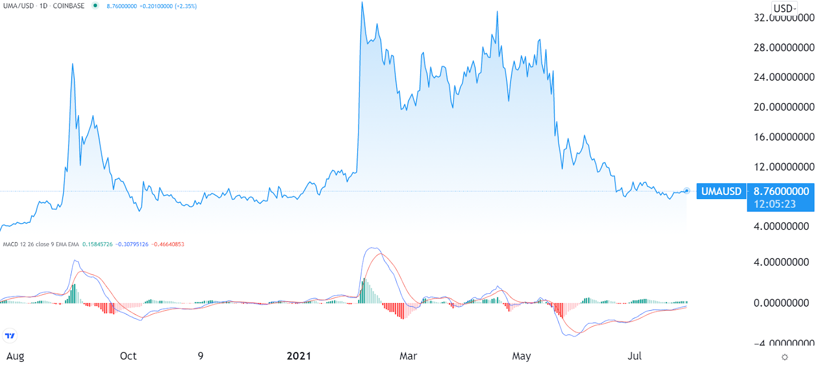 La capitalisation boursière actuelle d’UMA est de 547,2 millions de dollars, avec un volume de transactions quotidien d’environ 22 millions de dollars. Le token UMA est disponible à l’achat sur toutes les principales bourses, telles que Coinbase, Binance, OKEx, etc. Son prix record a été atteint en février 2021 à environ 34 $, après avoir chuté de 74%, descendant à 8,47 $.