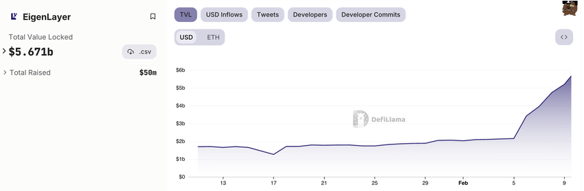EigenLayer, un protocole de restaking dans le secteur de la finance décentralisée (DeFi), a vu sa valeur totale bloquée (TVL) grimper d’un impressionnant 171 % au cours de la semaine dernière.