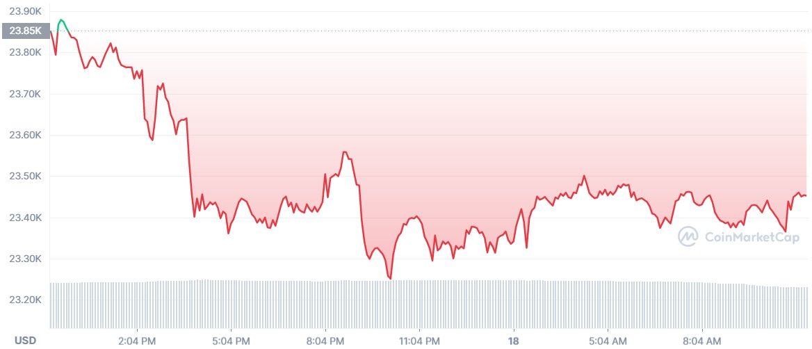 Cependant, alors que la dernière en date a permis à la petite pièce orange de rebondir, la décision de la FED de continuer d’augmenter les taux d’intérêt provoque déjà un certain chaos dans l’industrie. Peu après la publication du communiqué annonçant la nouvelle, le cours de Bitcoin a dégringolé autour des 23 300 dollars.