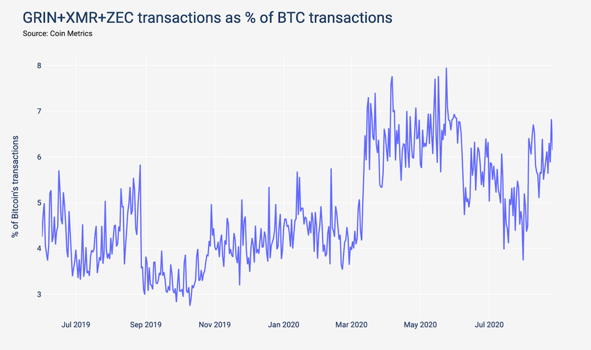 De nouvelles données de la société d’analyse de blockchain CoinMetrics montre que, malgré l’accès à des monnaies privées telles que Monero, Grin et Zcash, les utilisateurs de cryptomonnaies n’utilisent pas ces pièces à leur potentiel maximum.