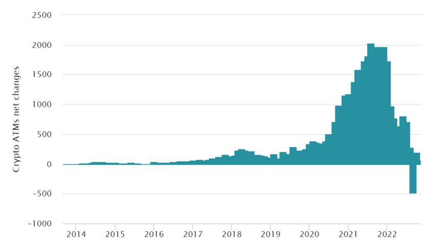Il est intéressant de noter que le nombre d’ATM Bitcoin dans le monde a diminué pour la toute première fois. En effet, près de 500 distributeurs ont été supprimés. On ne sait pas exactement à quoi cela est dû, mais les réglementations et l’attention croissante des autorités pourraient y jouer un rôle.