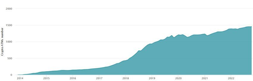 La croissance des installations de distributeurs automatiques Bitcoin en Europe est de 5 % depuis le début de l’année et de 10 % en glissement annuel. À la même époque l’année dernière, le nombre de ces “ATM” était d’environ 1 324.