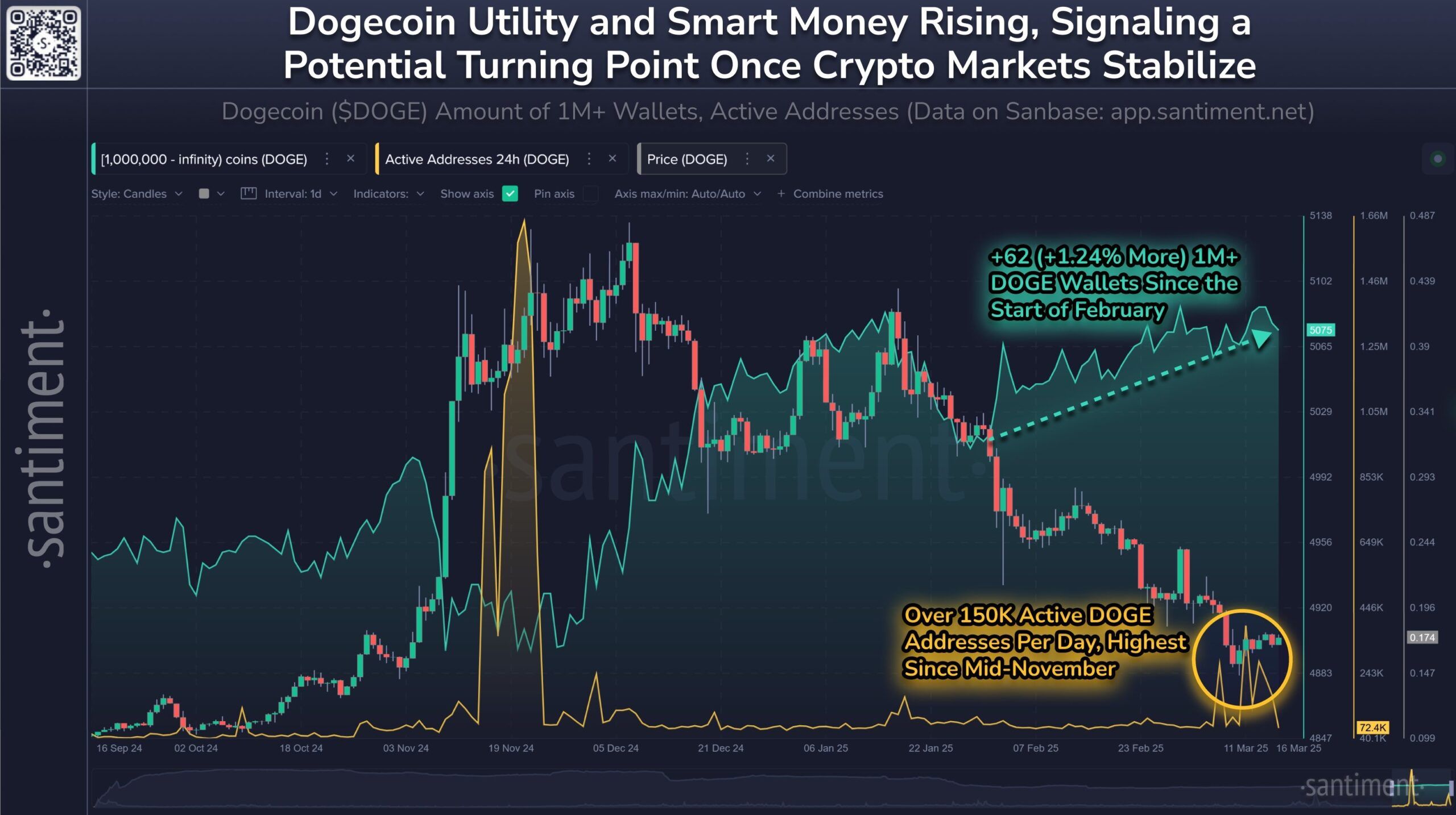 SponsoredAutre donnée clé : le nombre de portefeuilles détenant plus d’un million de DOGE a progressé de 1,24 % depuis début février. Cette hausse suggère que les baleines et potentiellement des investisseurs institutionnels accumulent Dogecoin sur ces niveaux, anticipant une éventuelle reprise.