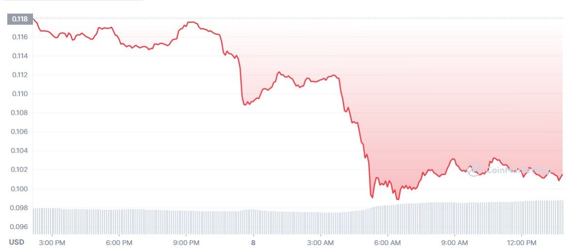 Pendant ce temps, la communauté rassemblée autour du DOGE voit d’un mauvais œil les conséquences des derniers événements qui ont secoué l’industrie sur le cours de son jeton. À l’instar de toutes les autres cryptomonnaies, Dogecoin se trouve désormais dans le rouge bien qu’il se soit stabilisé autour des 0,10 dollars.