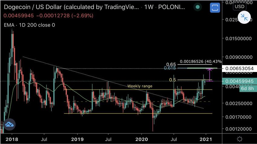 Le cours de Dogecoin (DOGE) a dépassé une résistance de long terme datant de 2019, et clôturé au-dessus de cette dernière.