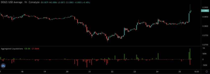 De plus, des liquidations de positions courtes sur Binance, d’une valeur de plus de 1,2 million de dollars, ont soutenu l’action haussière à court terme de DOGE.