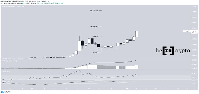 Le cours du DOGE est en hausse depuis le 23 avril, après avoir atteint un creux de seulement 0,169$. Sa hausse s’est poursuivie et ce 4 mai, le token a réussi à atteindre un nouveau cours record de 0,60$.