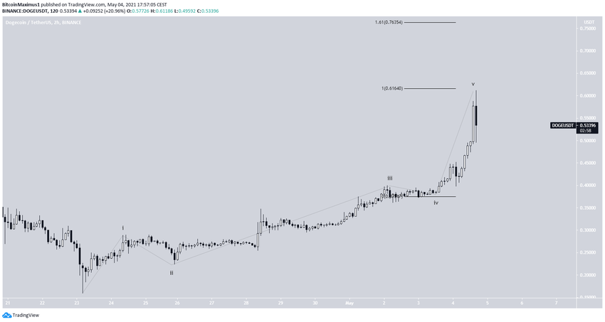 Le décompte de vagues suggère que le DOGE est dans la cinquième vague d’une impulsion haussière. Ce décompte soutient également l’importance de la zone de résistance de 0,62$.