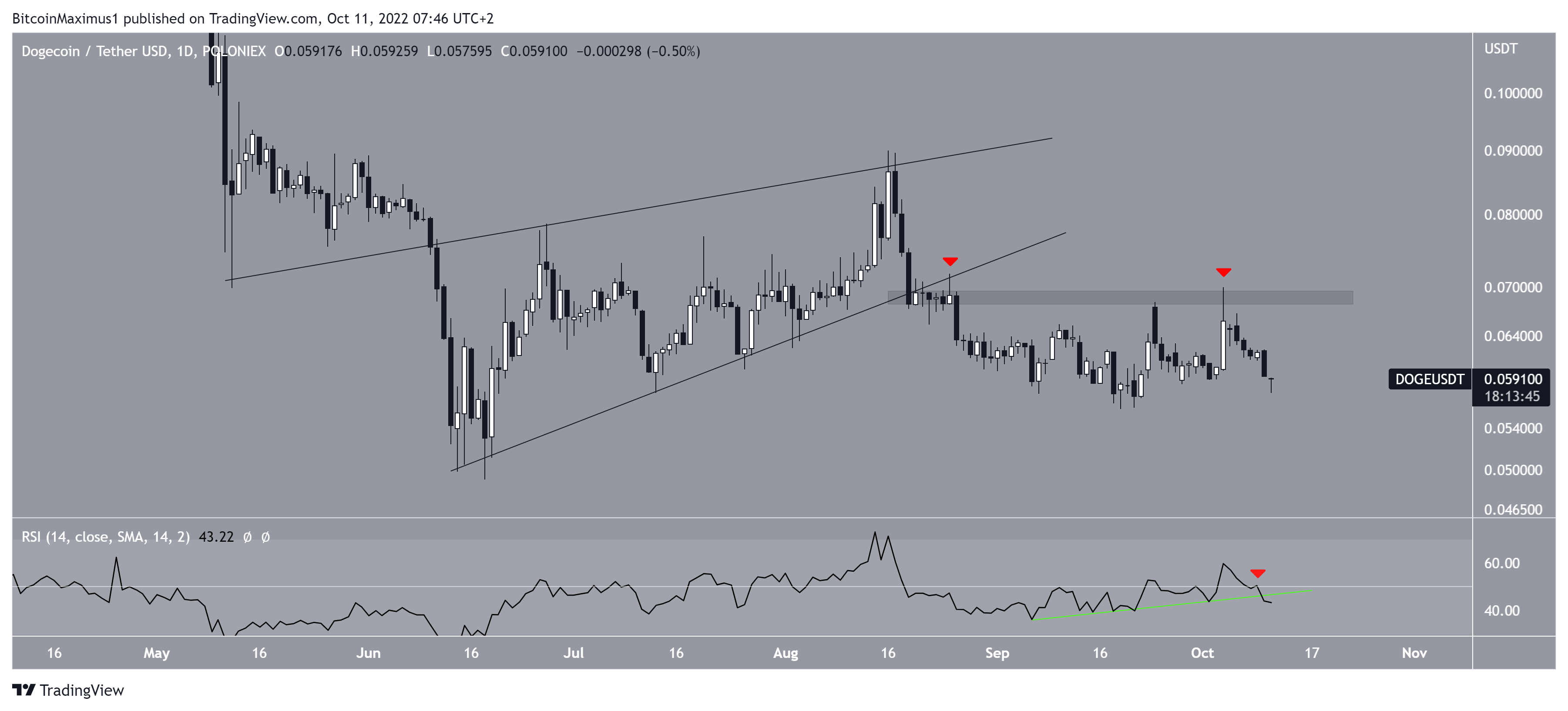 Il est donc probable que Dogecoin chute à nouveau vers la zone de support horizontale à long terme de 0,051 $.