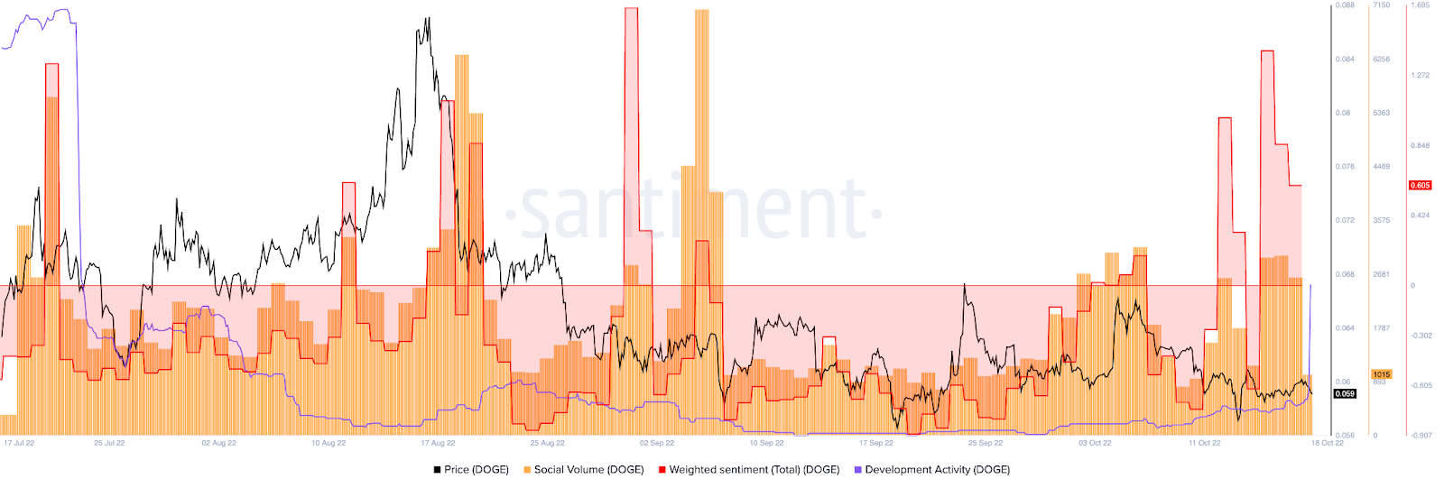 Sponsored SponsoredOn observe comme tendance haussière à court terme une amélioration du sentiment social ainsi qu’une hausse des mentions liées au social. Cependant, cela ne signifie pas que le sentiment est entièrement haussier ; ces données peuvent également signifier que les traders deviennent trop confiants. Généralement, lorsque cela se produit, le cours DOGE réagit à en allant à contre-courant.