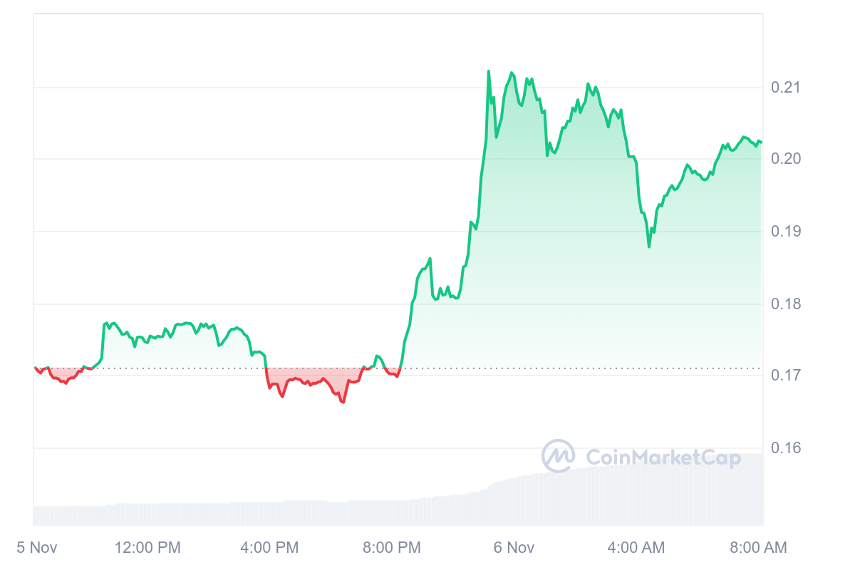En raison des dernières hausses du jeton et du panorama positif pour le marché des cryptomonnaies, les prédictions sont de plus en plus positives. D’après certains analystes sur X, les 40 centimes seraient maintenant un objectif raisonnable pour le cours du DOGE. Cependant, avec le retour de Donald Trump et d’Elon Musk au premier plan, plus rien ne semble impossible pour le Dogecoin et il n’est pas écarté d’aller plus haut.